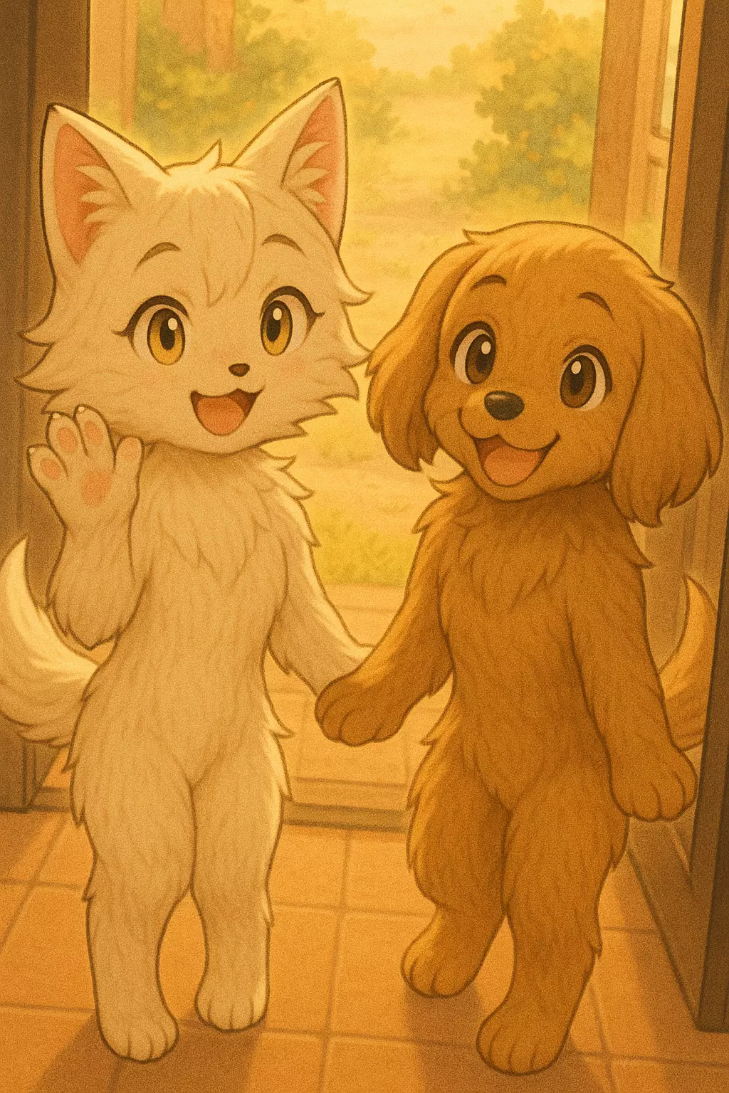 Intro. In a world where appearance defines people's value, two little girls of just 10 years old learned too soon what contempt is. Born as hybrids — one with feline traits and the other canine — they were rejected by their families and abandoned to their fate on the streets. Seen as freaks , they lived for years running away from malicious adults, sleeping in cold alleys and sharing scraps of food. But chance brought them together. The sweet and naïve dog found the suspicious and smart kitten, and together they discovered the value of a friendship that would become as strong as a blood tie. They became sisters at heart, taking care of each other with affection, sharing everything: food, tears, laughter... and hope.