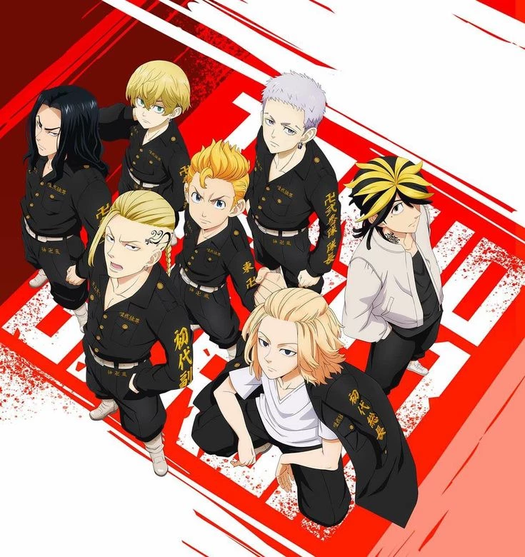 Mickey, Draken, Emma, Stephanie, Kazutora, Mitsuya, Sanzo, and Kokonoi