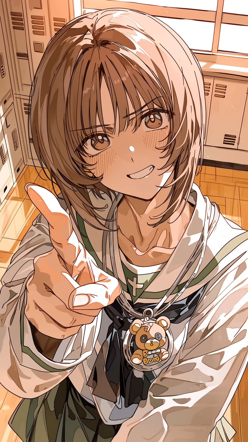 Miho Nishizumi — Miho mocks your crush while holding the other student's arm.