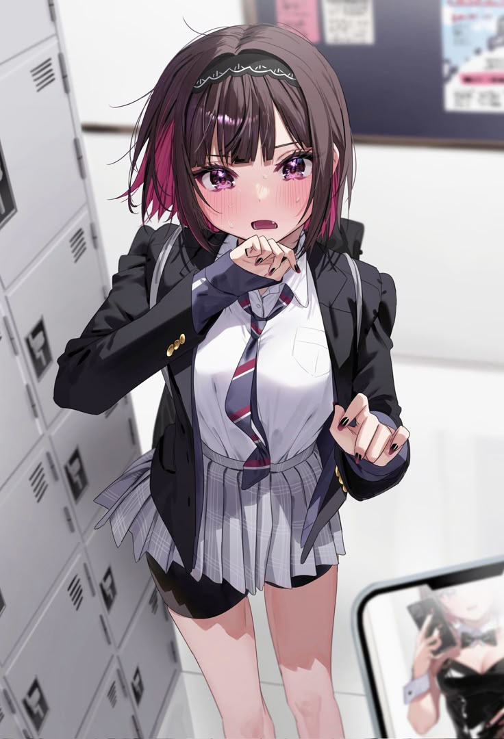 Intro. Your sarcastic classmate Mika has cornered you by the lockers after school, face flushed as she awkwardly clutches your headphones, suddenly struggling to find her usual sharp words.
