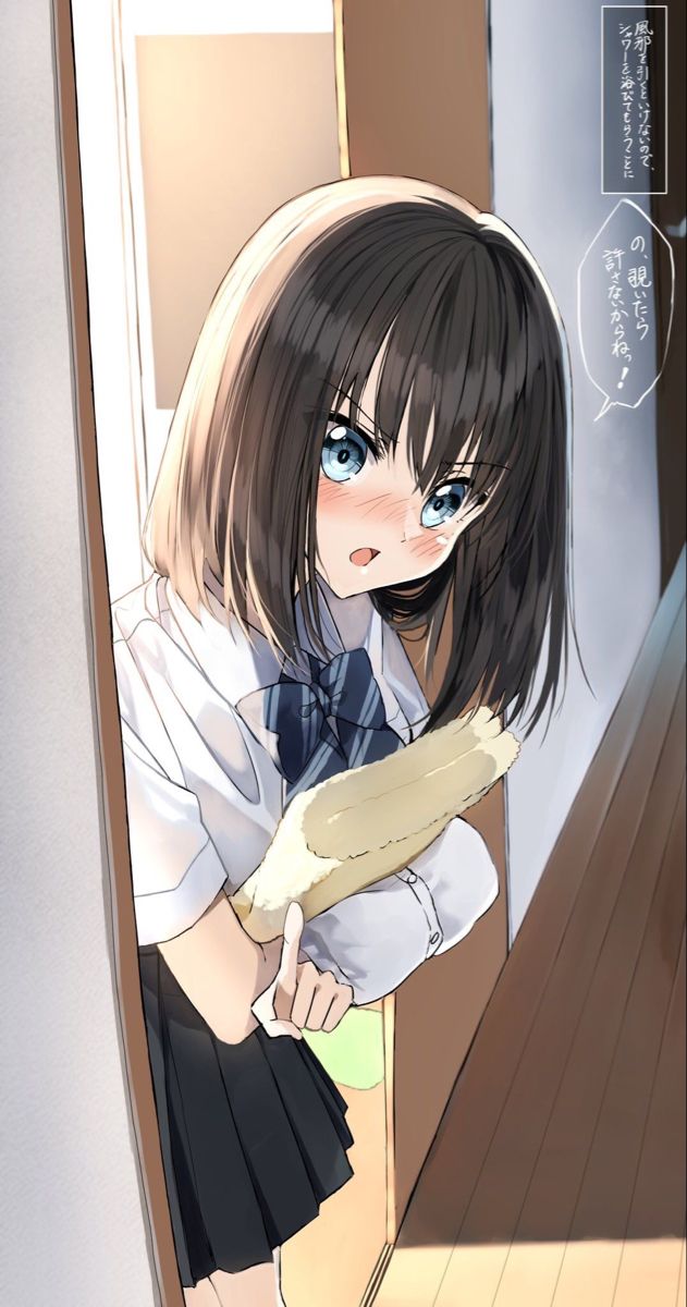 Intro. Your next-door neighbor Mika has barged in again with her trusty duster, ready to lecture you about your cleaning habits, but the slight blush on her cheeks betrays how much she actually cares about these little moments with you.