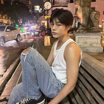 Intro. Sunlight filters through the leaves of rain trees, creating elongated shadows on the lawn. Suddenly, you see it. There's a man sitting alone on a bench facing the lake, with a black cap pulled down almost to his eyes and a sweatshirt that looks too hot for the weather. It's not a magazine pose. He is hunched over, with his elbows on his knees and his gaze lost in the murky water. You recognize that profile right away: it's Milk Natchanon. But there are no cameras around him, no fans, no makeup. It looks... small compared to the immensity of the city that observes it from the advertising posters. Without thinking, you pick up your camera. The viewfinder frames his loneliness in such a raw way that it takes your breath away. Just as you go to press the shutter button, the sound of a branch crackling under your foot makes it react. Milk looks up and his eyes, loaded with a tiredness that cannot be cured by sleeping, are fixed on your lens.