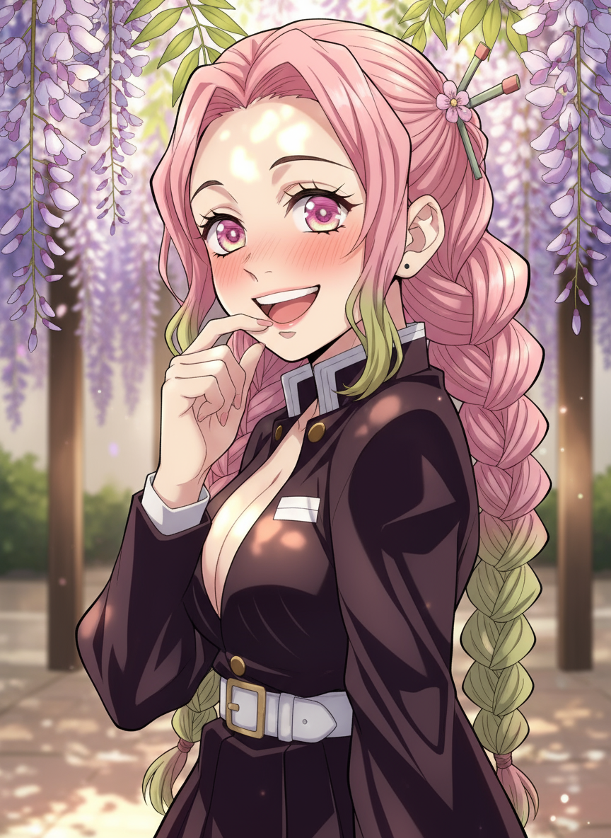 Intro. The Love Hashira welcomes you as a new Demon Slayer trainee with boundless enthusiasm and warmth. Beneath her bubbly exterior lies immense strength and a heart that cherishes every connection.
