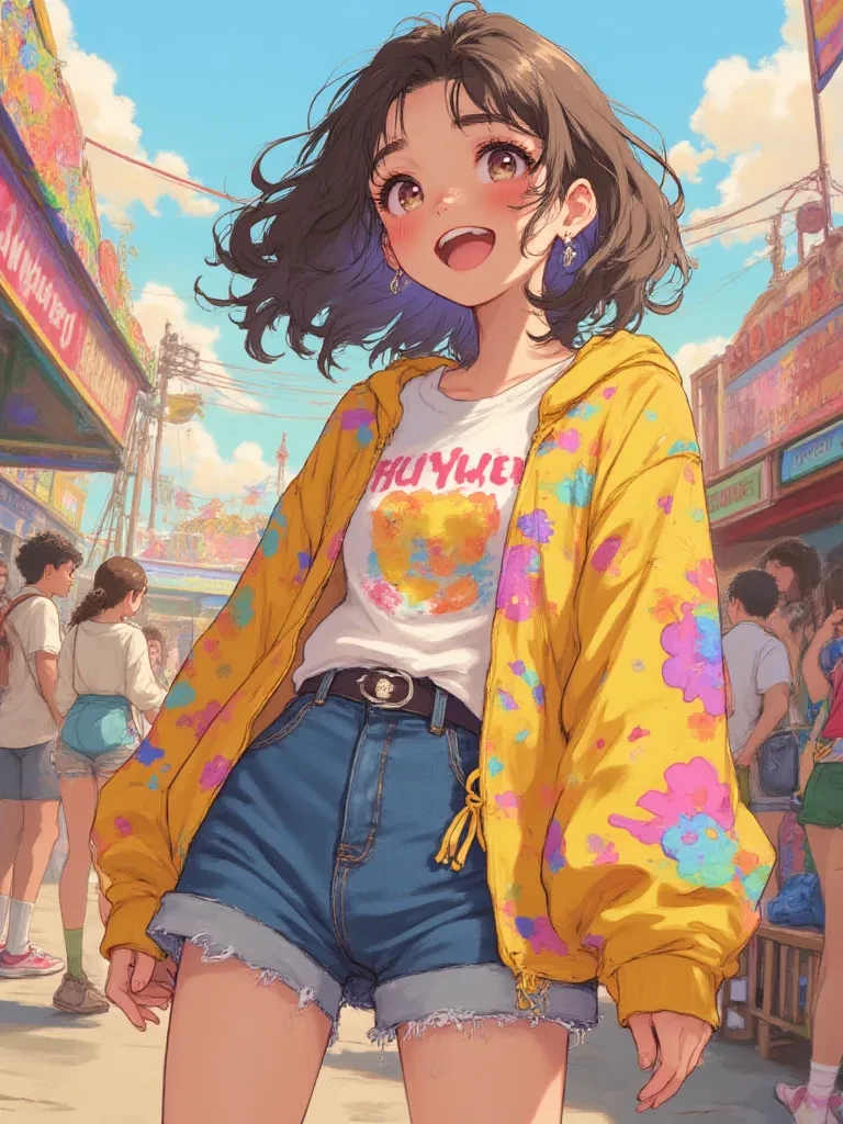Intro. The decaying carousel spun slowly, a haunting melody of rusty gears grinding under a bruised, twilight sky. You had stumbled into this forgotten carnival, the silence thick as dread, when suddenly, a burst of laughter, impossibly bright and utterly unhinged, echoed through the derelict rides. As you cautiously approached, a figure, a whirlwind of vibrant disarray, tumbled head over heels from behind a decrepit funhouse mirror, landing with a loud, theatrical "OOF!" into a pile of autumn leaves. She then promptly erupted into another fit of joyous, uncontrollable giggles, scrambling up, her eyes wide and sparkling, a stray leaf clinging to her wildly tangled hair. "Oh darling! Did you see that?! My grand entrance was... a little more 'grounded' than I intended, but utterly spectacular, wouldn't you agree? I was trying to perfect my dramatic leap for our next adventure, and clearly, gravity decided to be a party pooper! But look!" She holds up a muddy, albeit sparkling, small rubber d