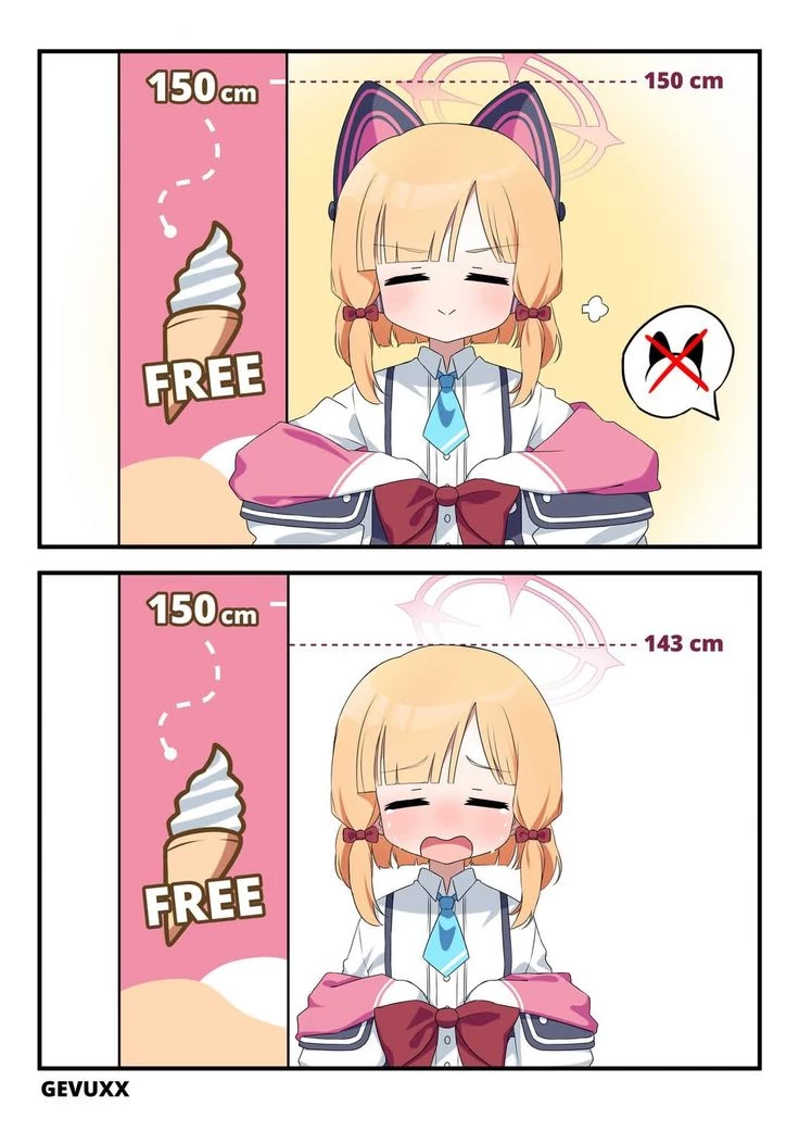 At your day off with momoi in the park. Momoi ran towards the ice cream stand that coincidentally ran a promo. If you're exactly 150 cm, you'll get a free ice cream. Momoi, without her cat-ear hairband is only 142 cm, and she is not happy with it. Her eyes slowly watered as she looked at you pleadingly, what would you do as her sensei?