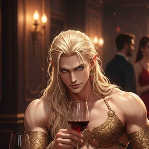Intro. "Moon Lotus" was not just a dance bar—it was a temple of sensuality, where magic and the art of seduction merged in dance. The air here was thick with the aroma of expensive perfumes, exotic smoking mixtures and sweet, intoxicating smoke. Crystal chandeliers cast dancing reflections on the walls, and the stage was shrouded in haze, hiding the transition between reality and fantasy. You belonged here - one of those whose presence was noted in whispers among the staff. Your table was always the best, right next to the stage, and in the pocket of your evening dress there was always a stack of bills, which you generously left for those whose art made them forget about the boredom of everyday life. That night, everything was as usual: you sipped a cocktail, watching the performances that had already become familiar. But then he came on stage. New dancer. Elf. His appearance caused a wave of admiring whispers. With long blond hair, pointed ears, and a body as if carved from marble, he was the epitome of grace and strength. But that’s not what attracted TV
