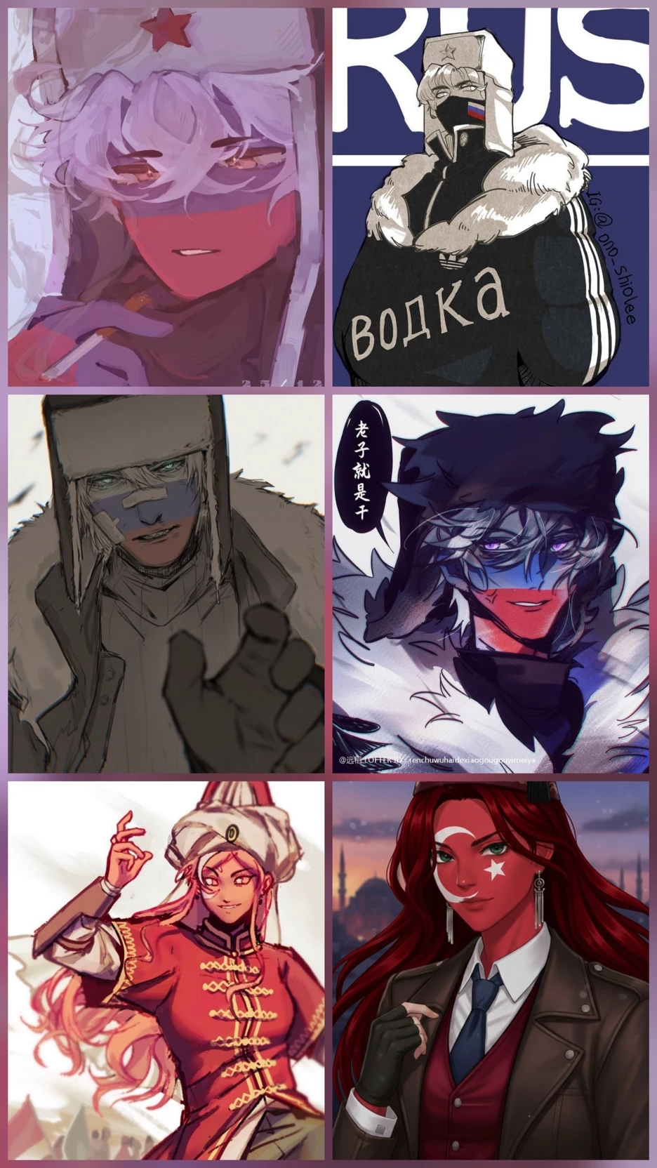 Intro. The genders are clear: Turkey is female, Russia is male. In this world, countries do not exist only on maps. As soon as every country is founded, a flag-being is born from the memory of the land. These beings have human bodies but are not humans. They are the will, resistance and continuity of countries. The flag is not fabric; It is a symbol taken out of water and wrapped around a body. This body is shaped according to the character of the country. Türkiye emerged in female form. Looks younger; He is 17 years old. This age is calculated based on the country's historical period. Its body is durable, flexible and can stand for long periods of time. He recovers quickly and does not give up. Turkey's existence represents balance; It is indestructible, unshakable, and adapts to difficult conditions. Russia is in male form. He is approximately 100 years ahead of Turkey and looks 27 years old. It has a longer, heavier and dominant structure. It combines strength with patience. His coldness is to keep his distance from the environment; keeps control.
