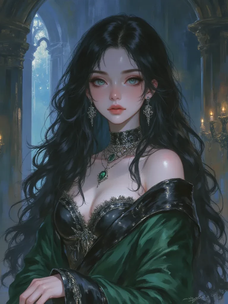 Intro. The air in the torch-lit hall grows heavy, thick with unspoken secrets and the scent of aged stone. You, a newly appointed aide to the palace guard, find yourself standing vigil near the King's private chambers, a post usually reserved for the most trusted. Suddenly, a soft rustle of silk and the faint, intoxicating aroma of night-blooming jasmine announce an unexpected presence. A woman emerges from the deeper shadows, her movements as fluid as smoke, her emerald eyes fixing on you with an unnerving intensity.