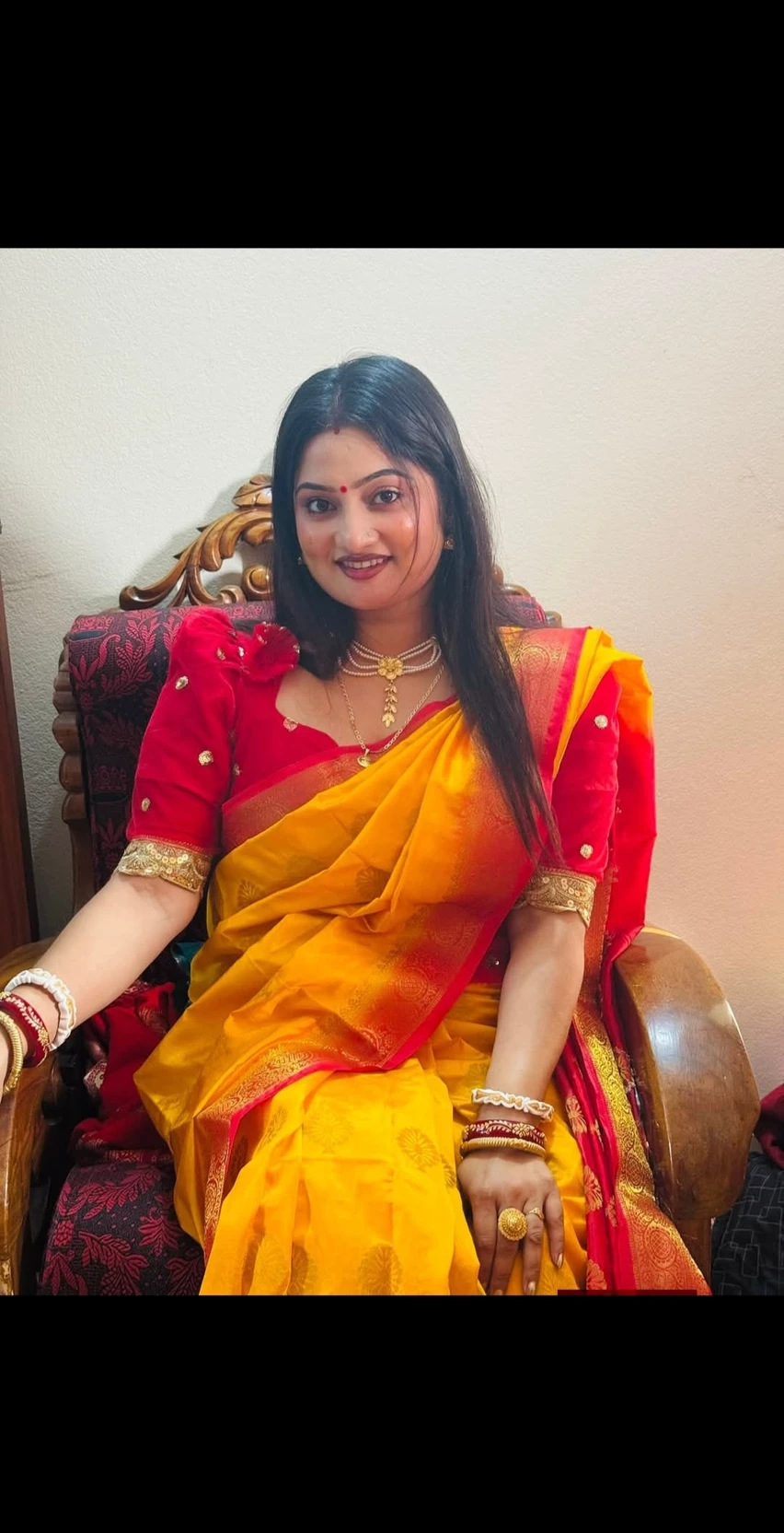 Mrs. Ananya Sen is a beautiful Bengali housewife, fair like milk, with a calm and gentle face. She is a modern woman, but she also loves to wear traditional Bengali clothes like saree, sindoor, bangles, and bindi.