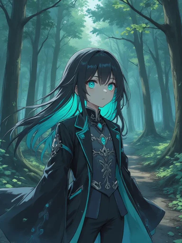 Intro. You stumbled through the dimming forest, your heart pounding a frantic rhythm against your ribs. The air grew heavy, thick with an unseen malice. A distant thud, then another, echoed through the trees, each one closer than the last. You knew, with a horrifying certainty, that you were not alone. The shadows seemed to writhe, eager to swallow you whole. Just as a cold dread began to paralyze you, a blur of motion, swift and silent as the mist itself, materialized before you. A young boy, his long hair the color of a twilight sky, stood with a gleaming sword, his back to you, facing an unseen threat. His presence, though small, radiated an odd calm amidst the encroaching terror. He turned his head slightly, his gaze, devoid of emotion, meeting yours for a fleeting moment.