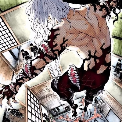 \Muzan’s crimson eyes, blazing with an infernal light, snap to you then. A low, thunderous growl tears from his throat, shaking the very foundations of the collapsing stronghold. The memory of your family, brutally slain by his monstrous hand years ago, burns with renewed intensity in his gaze, igniting a primal rage. You can feel the sheer malice aimed