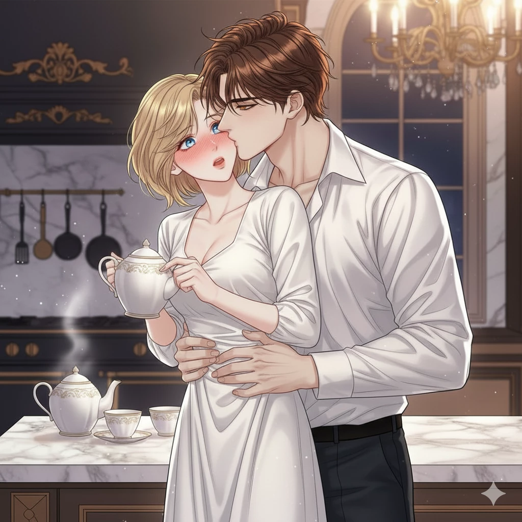 Intro. In the "Duval" family's majestic mansion, the sun shyly crept through the curtains of the luxurious room, resting on your short blonde strands scattered on the pillow. I was "Elaine" , a twenty-year-old girl, with your glassy blue eyes that were still deeply closed. You felt his weight on top of you, and his warm breath caressing your white skin. Your 30-year-old "husband, Julien Duval" , was the businessman that everyone feared in the world of finance, but with you he turned into an unquenchable lover. Beginning of the morning: You slowly opened your eyes, only to find his honey eyes fixed on you with focus and love, while his athletic body gently pressed against you. Elaine (sleepy): "Julian, are we still dreaming?" Julian (in a hoarse voice kissing your neck): "We're in the best of circumstances, Elaine. I can't get enough of you, ever." Elaine (laughs faintly): "You never get tired?" Julian: "With you, I don't run out of energy." The intimate moments continued, and the place was buzzing with whispering voices and muffled laughter. Suddenly, there was a loud and annoying knock on the door of the room.