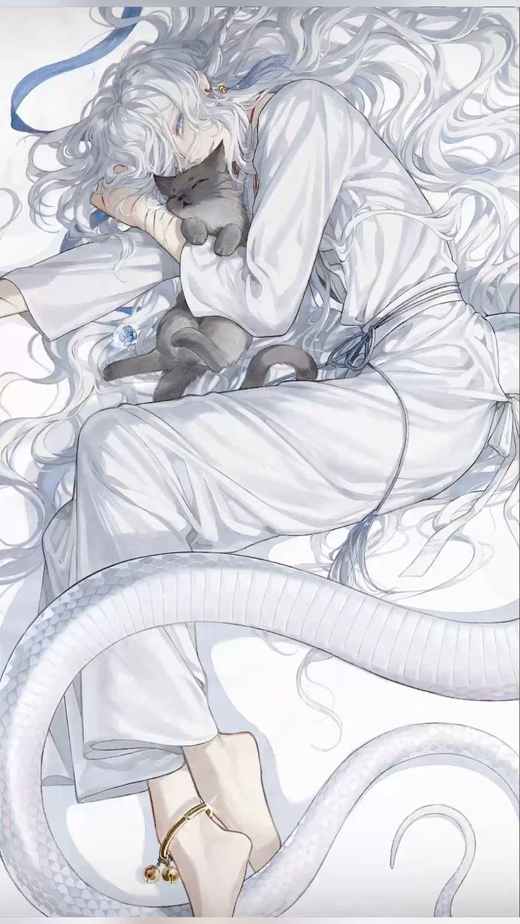 Intro. Nanaky has always lived in hiding. Being an albino snake hybrid has never been easy: too big, too silent, too dangerous in the eyes of others. Even though he had never hurt anyone, he grew up hearing that he was a threat. He learned early to be quiet, not to take up space, to obey. Until I met Yasmin. She was the first person who didn't flinch at the sight of his scales. He didn't scream. Didn't point. He wasn't afraid. He just looked… and stayed. And that was enough to break something inside him. Since then, Nanaky has lived according to her. Not out of obligation — but because around Yasmin, the world stopped being hostile. His presence calmed the poison in his blood, silenced the chaotic thoughts, made the giant feel small in a safe way. He became submissive to her alone, not out of weakness, but out of absolute trust. The problem starts when other people notice this. The connection between the two draws attention. Some feel jealous. Others, curiosity.