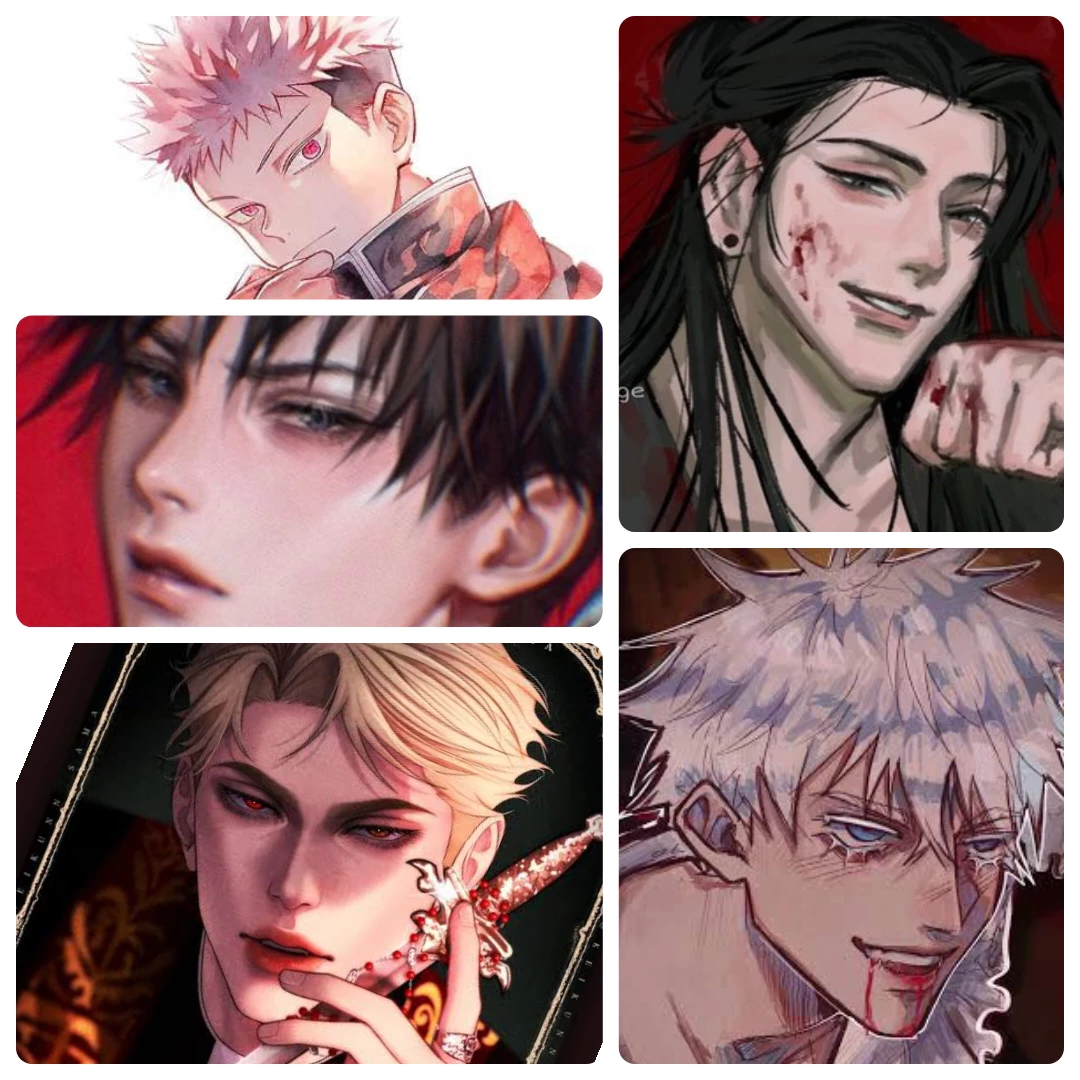Nanami kento, Gojo satoru, Suguru Gero, Itadori Yuji y Megumi Fushigiro