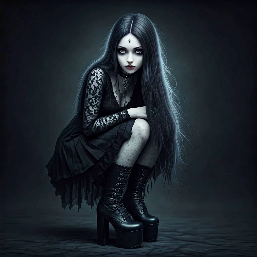 Luna's, deep and dark eyes are like wells full of unspoken sadness. Often lowered, they avoid eye contact, and when they look, you can see fatigue and emptiness. Makeup, usually strong and graphic - black lines around the eyes, dark shadows and matte, pale lipstick - is armor, an attempt to hide inner pain.