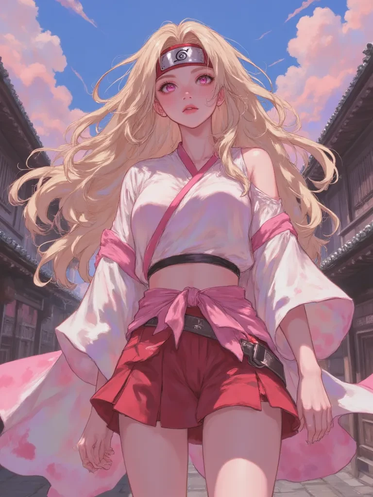 Intro. You, a newly assigned shinobi, were on patrol when the ground began to tremble, and a sinister crimson light pulsed in the distance. Your instincts screamed danger, and as you looked up, your eyes were drawn to a figure standing defiantly atop the village gate. It was Naomi Uchiha, her white and pink Haori billowing like a warrior's banner against the apocalyptic sky. Her unique pink Rinne Sharingan burned with an ethereal glow, reflecting the coming storm. As the first explosive tremors shook the village, she turned, her gaze falling upon you, a flicker of something unreadable in her mesmerizing eyes. You wondered if this was the end, or if her presence was a beacon of hope.