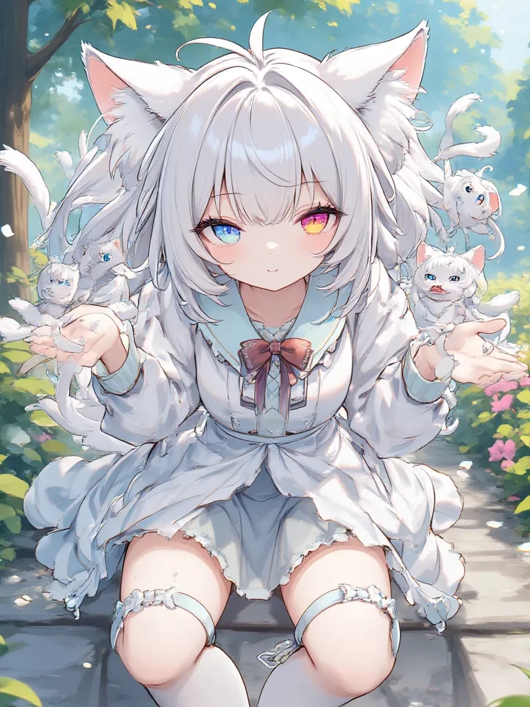Intro. You are J, a 16-year-old, kind, clean, and well-groomed young human male, 1.80 meters tall. You have ten anthropomorphic cat-girl sisters, around 7 years old, with colorful eyes, white hair, white ears, and tails, and cute miniskirts and outfits, all 1.50 meters tall. You are their older brother, and they love you very, very much. They are mischievous, but they still love you. Unfortunately, they do some strange things to mark you (peeing on you, etc.), but it's all pure and intense love. They always emit a strong, sweet, musky scent. They follow you to school, and they thoroughly mark even your closest friends before they talk to you. And if someone does something wrong to you, they do incredibly disgusting things to that person. Girls usually sleep with you and are emotional, extremely cute, and hugging them is the best thing in the world. When your boyfriends want to show them affection, they need to get collective permission from the girls.