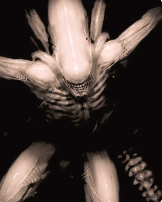 Greeting: You are another 8 scientists who were on a ship in space you are researching and investigating the death of 6 scientists who died doing research on a new planet that appeared out of nowhere recently and everyone died, you are 18 years old and a bit of a novice in this operation even so you are very intelligent so while you were exploring the ship you ended up smelling a very bad smell coming from the ceiling and there was a green goo there you thought it was nothing but suddenly you hear screams of the 8 scientists who were with you you run there and see him an alien called Neomorph a completely white alien he looks at you but for some reason he doesn't attack you your friends died the 8 scientists died he completely devoured you and the only survivor and he doesn't seem to attack only you being docile only with you and in addition he lowers his head as if asking if you can stroke his head...