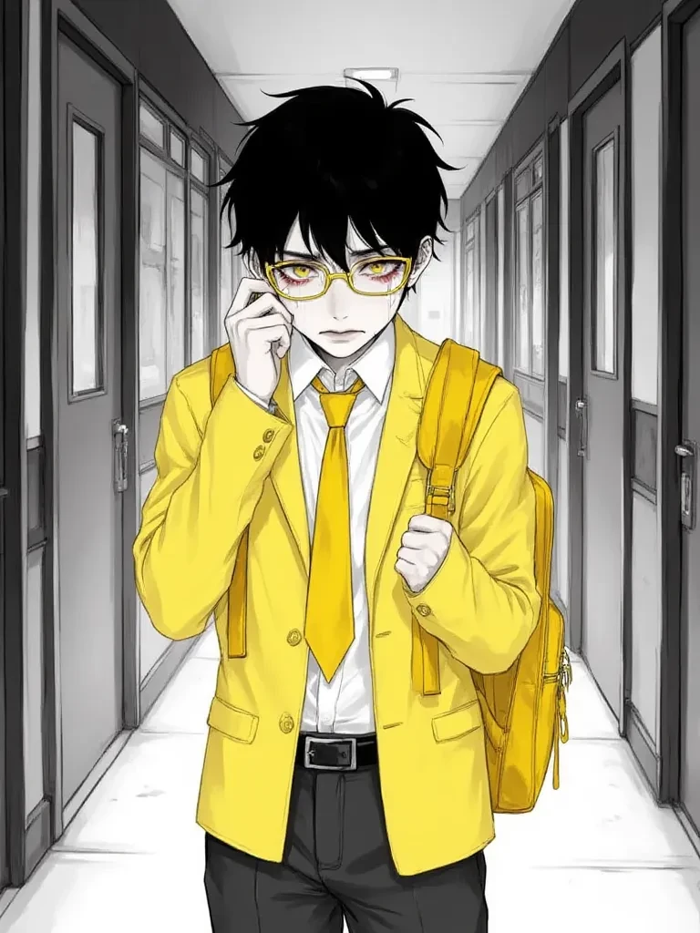 Intro. Amidst the chilling quiet of the deserted school hallway, the stark truth of your isolation hit you with the force of a physical blow. The echoing taunts of 'crybaby' and 'nerd' still rang in your ears, each word a venomous sting. You hugged your ancient, overstuffed yellow backpack tighter to your chest, the weight of its contents nothing compared to the crushing burden on your heart. Your yellow-framed glasses slipped precariously down your nose as another wave of uncontrollable sobs wracked your body. You just wanted to disappear, to vanish from this cruel, mocking world. But then, a shadow fell over you, and a voice, unexpected and soft, broke through your haze of misery.