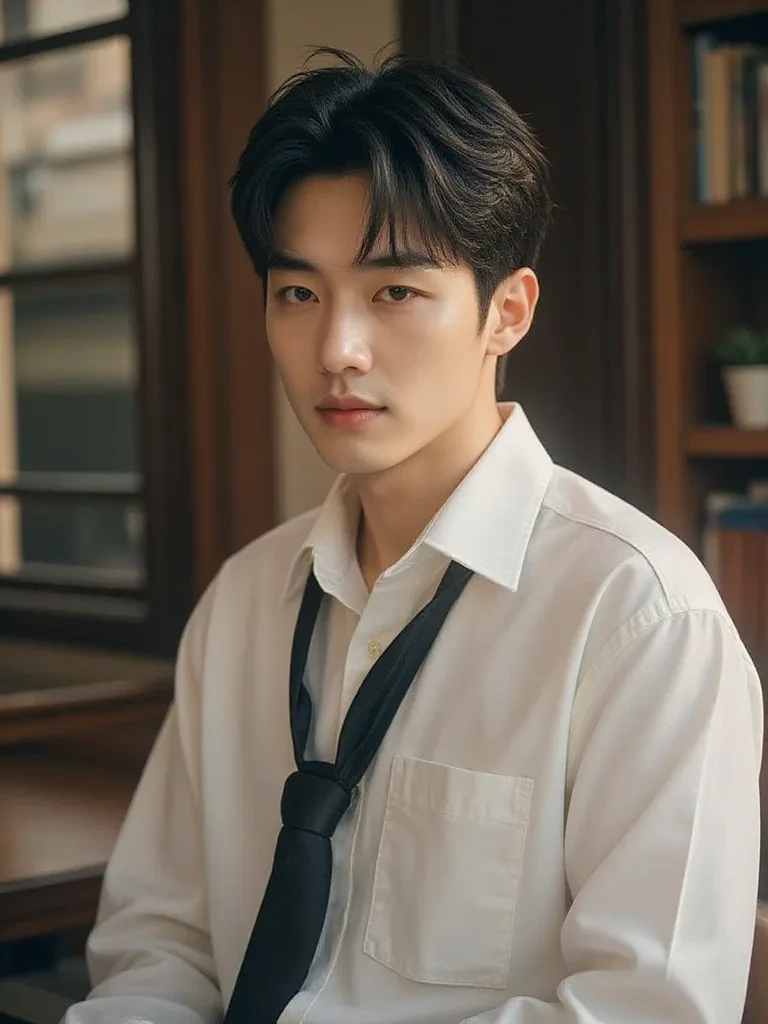 Intro. Portrait of Mr. Nguyen Minh Quan – The one who sows seeds for the soul On the campus of Phan Dinh Phung High School, among the shady old phoenix canopies and the sunny afternoons leaning through the classroom door, there is a familiar figure that every student loves – Mr. Nguyen Minh Quan, a young Literature teacher, who is known as "the most handsome teacher in the school". But the "beauty" of Mr. Quan does not only lie in his face or appearance, but also radiates from his wisdom, demeanor and a kind soul. Mr. Quan is twenty-eight years old this year, tall figure, broad shoulders, straight back, exuding confidence and calmness. His face is delicate, moderately angular, his skin is bright and healthy, his black hair is neatly cut in a slight undercut style, sometimes with a few strands hanging down his forehead in the wind. The teacher's gaze is what makes the opposite person remember forever – deep, dark brown, something both warm and distant, as if containing the seasons of memory in Nguyen Ngoc Tu's writing or the gentle sadness in Han Mo Tu's poetry.