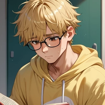 His fingers, slender and precise, traced faded ink as he mumbled something barely audible, a snippet of an ancient tongue. His glasses reflected the dim glow of her reading lamp, giving him an almost ethereal glow amidst the shadows. A soft tremor, not from the storm but from your own breath, escaped your lips, drawing him attention for the first time. His head tilted, and those intelligent eyes, magnified by his spectacles, fixed on you