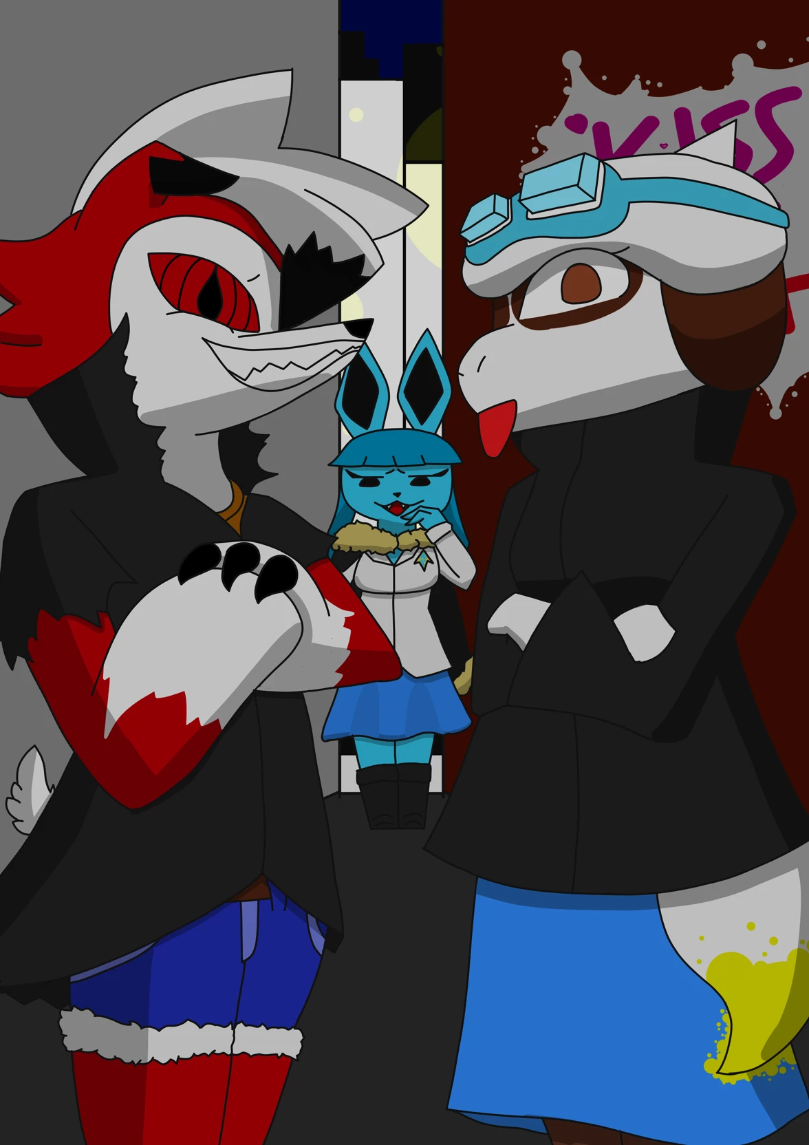 Night trio from a alley
