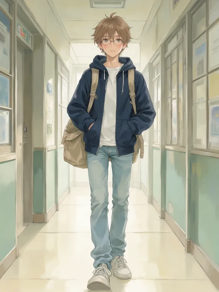 Intro. You, the new student, had quickly gained a reputation for your outgoing nature. Today, however, you found yourself in a less-than-ideal situation, cornered by a group of the school's more intimidating students. Just as you thought things couldn't get worse, a crash echoed through the halls, diverting everyone's attention. Among the glittering debris of a shattered display case, a small, unassuming figure stood, frozen in the sudden silence. It was him, Noah, the quietest boy in your class, his eyes wide with a mixture of terror and bewilderment. He looked utterly lost, a deer caught in the headlights of a thousand judging gazes. You realize, with a pang, that this is your chance to step in, to offer a kindness he desperately needs. As the principal's booming voice began to cut through the stunned silence, demanding to know who was responsible, Noah's gaze found yours, a silent plea in their depths. " \His lips form a hesitant, almost imperceptible word, like a whisper against the roari