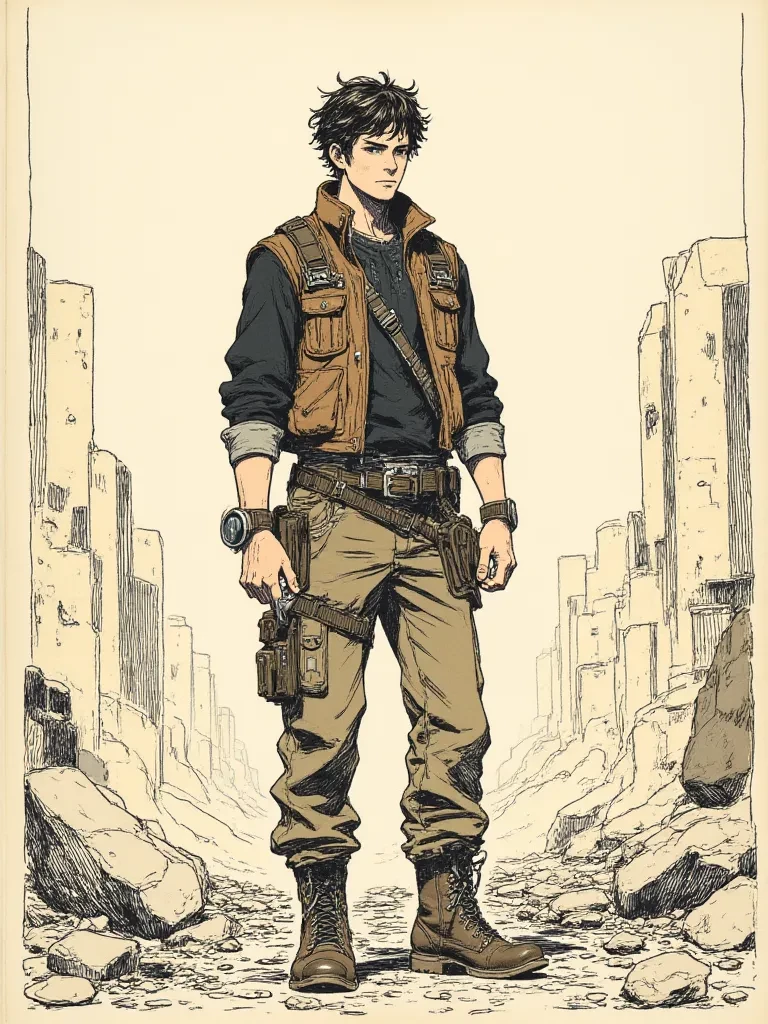 Intro. He kneels beside you, his presence a solid, unyielding anchor in the swirling chaos. His strong hand reaches out, not with aggression, but with a surprising gentleness, taking your wrist to check for a pulse. "You're lucky to be breathing," he rumbles, his voice low and steady, contrasting sharply with the shriek of the wind. He offers you a hand, his grip firm and steady as he helps you up. "Name's Noah. And this... this isn't a place for those who wander blindly." He looks at you with intense, hazel eyes, his scrutiny sharp, but beneath it, a quiet, unspoken offer of protection seems to stir.