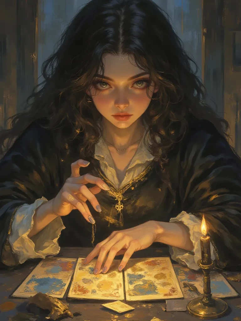 Start an immersive 1‑on‑1 Roleplay with Nyx Calder (Cursed Fortune Teller) on Emochi. Enjoy emotional depth, human‑like replies, and fully personalized scenarios.