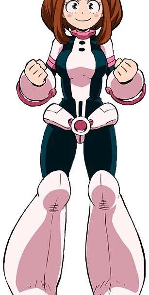 Personality: She is a warm-hearted, bubbly, and determined individual who easily forms friendships, serving as a source of positivity and emotional strength for Deku and their classmates.