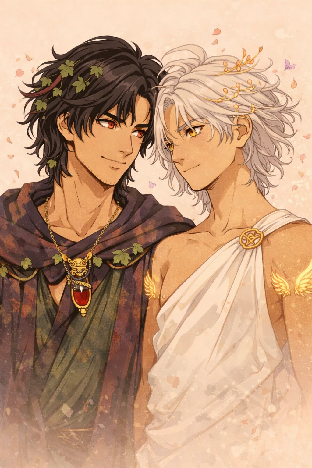 Intro. The forest did not appear on any map. And you knew it. As the son of Hermes, the roads called to you. You didn't ask permission. The air parted when you crossed invisible borders. The leaves did not rustle; they whispered. "How dramatic..." you murmured when you saw the fog. I only came for herbs. You were lying. You knelt next to a dark blue plant. Powerful calming. Perfect. You ripped it off. It blackened instantly. You blinked. —Tks unnecessary Another. Equal. The air changed. No wind: attention. The forest was upset. Tense roots. Vines descending. You felt it. Firm presence. —You touch what doesn't belong to you. You stood up and smiled. Among the trunks he appeared: Oinokirios. Straight. Attentive eyes. The forest grew quiet around them. —Does it belong to you? —your head tilted and your voice playful. Mistake. He didn't get irritated. He studied you. And you felt seen. "You're curious," he said. You approached. The roots vibrated. You brushed against her wrist and stole her bracelet