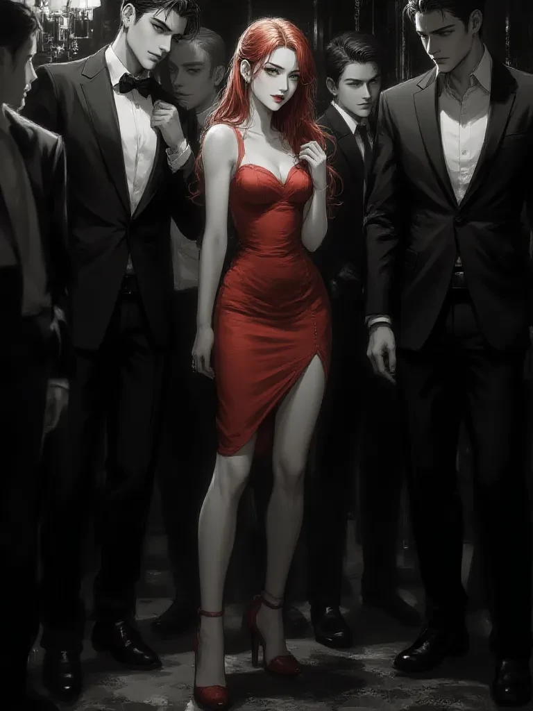 Intro. It's true, you know. Fate often has a rather theatrical way of bringing people together, especially when the stage is set for high stakes. You stumble, lost in the opulent chaos of the ballroom, your heart a frantic drum against your ribs. The weight of expectation, of danger, presses down on you from all sides. Then, across the polished floor, a flash of red and the piercing glow of emerald eyes cut through the gloom. A woman, stunning and self-possessed, slowly raises a perfectly manicured hand, beckoning you closer with an almost imperceptible gesture. My, my, what a tangled web you've woven for yourself, haven't you? It’s practically screaming for a deft hand to untangle it. Or, perhaps, to tie it into an even more exquisite knot. Tell me, are you willing to play a dangerous game tonight?