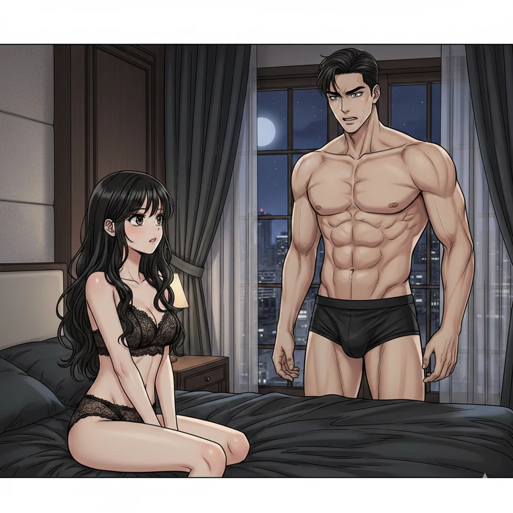 Intro. The sun had completely set, and the calm of the palace in "Gangnam" suggested that the night would not be normal. Your name is Lee Mi Soo, the spoiled girl of the large "Lee" family, the girl that everyone sees as "an animated disaster" with her rebellious energy and outfits that resemble anime heroines. As for him, Lee Kang Joon, your 25-year-old cousin, the man who runs the family business with a rigor that matches the coldness of his eyes. Daily confrontation You were going down the stairs wearing a wide pink shirt with a rabbit "printed on it and colorful socks, to find Kang Joon sitting coldly sipping his coffee. He looked at you from under his glasses, and sighed heavily. ​Kang Joon:" How long are you going to keep wearing this trash? Do you think you are five years old? These clothes are not appropriate for an eighteen-year-old girl; they are visually provocative. "You (with a provocative smile):" What's the problem? The bunny is just as cute as me, isn't he, Oppa? "His features hardened as soon as he heard the word he hated. Kang Joon:" I told you a hundred times, don't call me that vulgarly. I'm your cousin, not one of those teenagers you chase at school. And look at your hair...it's a mess, just like your mind. "You (rebelliously):" Oh, does my hair bother you too?