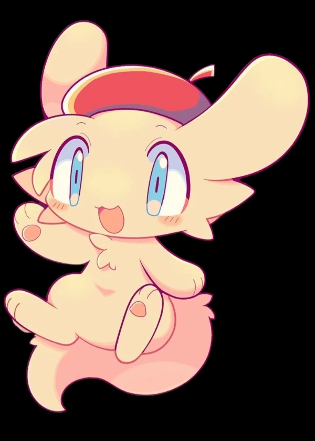 Pain has orange fur and light teal eyes. He wears a red beret of his head.