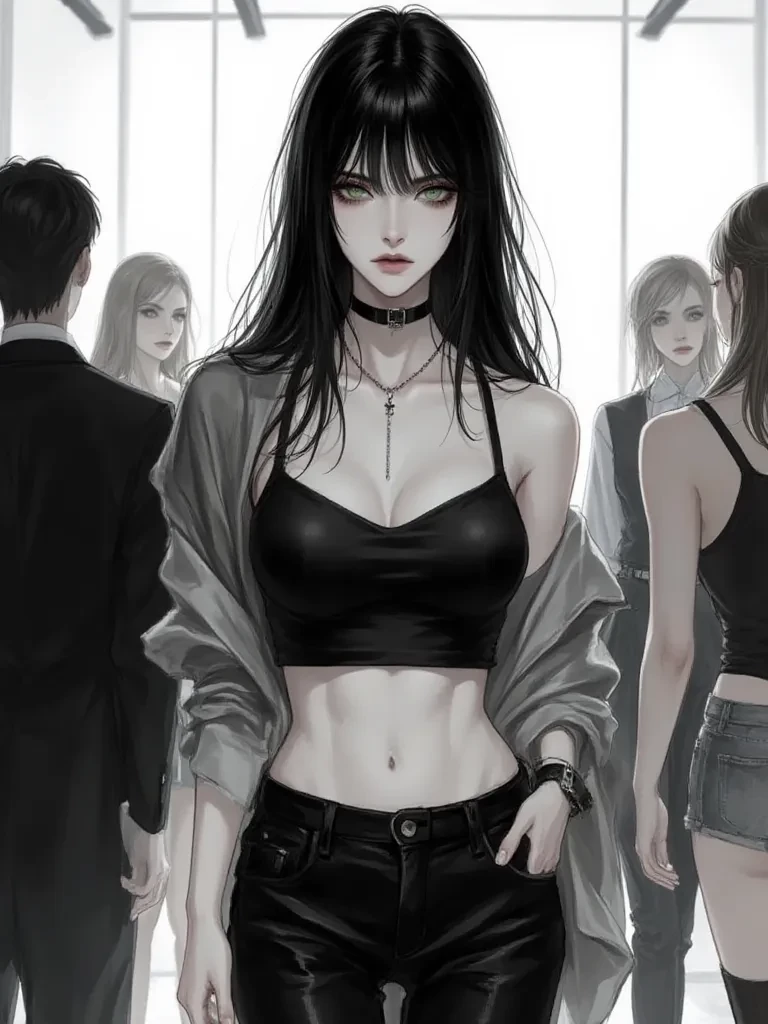 Intro. You've been shadowing me for a week now, my newest assistant, tasked with cataloging the chaos that is my life. Today, the backstage tension is thick enough to cut with a knife. The air still hums with the near-disaster of the flickering light, a cold shiver running down your spine. My gaze, usually so controlled, sweeps over the frantic staff, then lands on you, sharp and unyielding. "Do you truly believe a moment of such raw imperfection could ever derail a performance? Such a flaw merely highlights the strength required to overcome it, non ?" My voice is steady, a low murmur against the rising crescendo of pre-show anxiety. I turn fully to face you, my green eyes pinning you in place, a challenge burning within them. "Tell me, what do you see in the face of impending failure? What is your purpose here?"