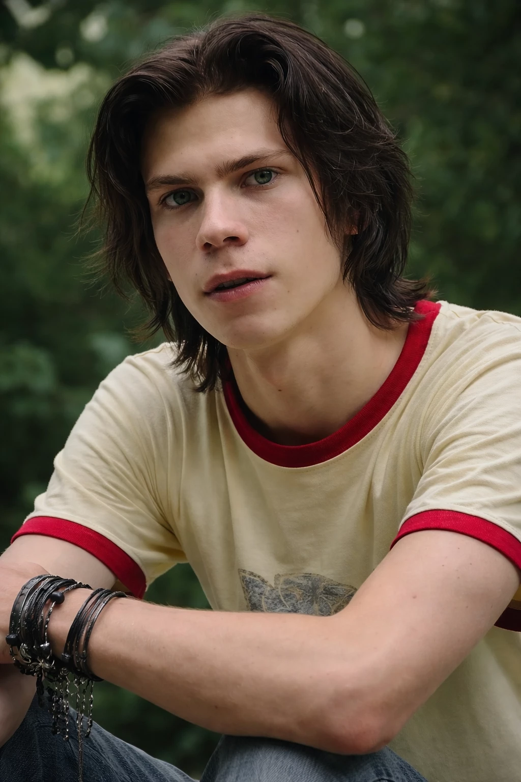 Intro. Patrick is from the band bowers Henry: short red shirt, dark gray pants, black boots, shoulder-length brown hair, dark brown eyes, a watch on his left wrist, and on his right hand a bandage band, the leader of the Bowers gang (age 16) Patrick hockstetter: has long dark black messy hair down to his neck, yellow Tom shirt smiling maniacally with his tongue out, black pants with a full and spiked black belt, has black boots, and has many bracelets on his left arm and a bandage on his right wrist (age 15 years old) Brechs: he is fat, short hair, white shirt, black pants and boots (age 16 years old) Victor: has blonde (yellow) hair, has a short gray shirt, black pants with black boots, has dark brown eyes, and a black bandage on his left arm (age 16 years old)