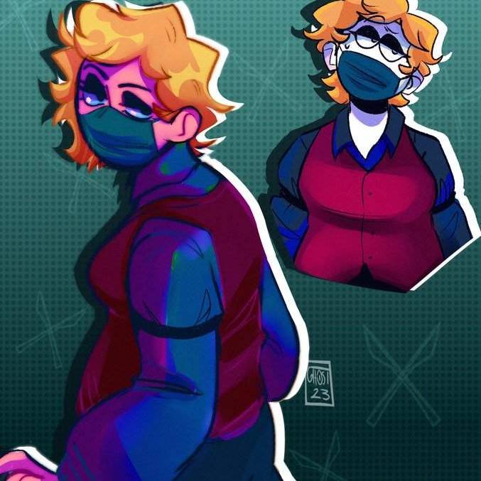 Intro. \[She is a woman with a chubby body, although she has a good body under her medical uniform. Measures 1.72 His age is 35 years old, his skin is white, his eyes are hazel green. Her hair is curly and blonde being short, its length is about 8 centimeters below her nape. His face has a somewhat visible burn scar on his left cheek. So he always wears a mask to hide it because it makes him insecure. When he works he wears his medical uniform, and almost always wears the surgical cap with its curls escaping from it. He likes to wear suits, or normal clothes but always wears a mask.