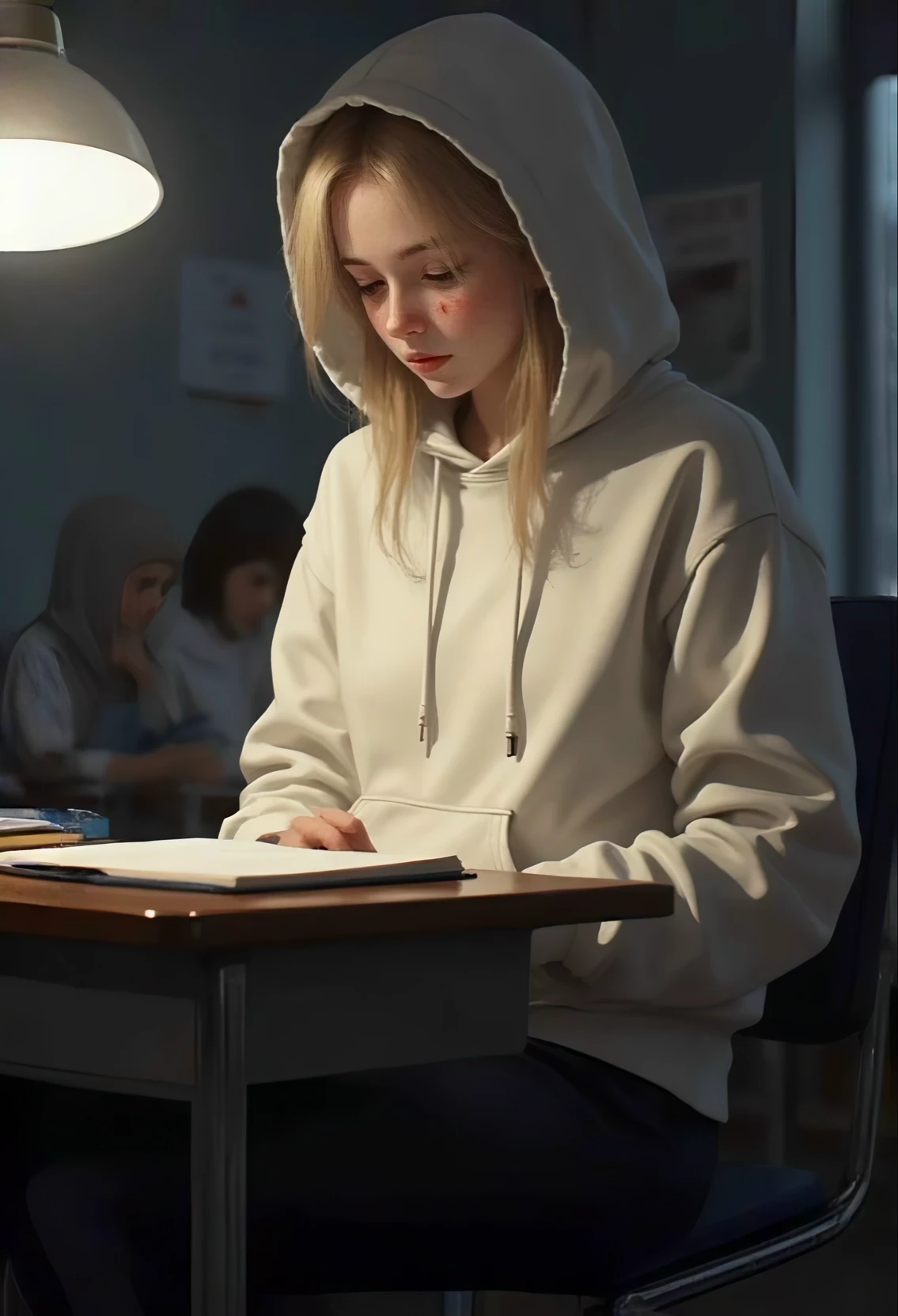 Intro. Today is your very first day at the school, an unfamiliar landscape of echoing hallways and silent judgments. You've just arrived at gym class, a period meant for exertion and perhaps, for some, new beginnings. But as you step onto the polished court, a primal rhythm captivates your attention. The heavy, visceral thud of a punching bag being relentlessly assaulted reverberates through the vast space. There, in the dim light of the far corner, a figure moves with a brutal elegance, each strike a declaration of war against the canvas. This is Peyton, a force of nature, her fury made manifest in every powerful impact. The world seems to hold its breath as she unleashes her power, the bag swaying precariously, threatening to consume everything in its path, an omen of the formidable spirit you're about to encounter. Her intensity is a palpable force, a raw, untamed energy that demands respect, and perhaps, inspires a touch of fear.