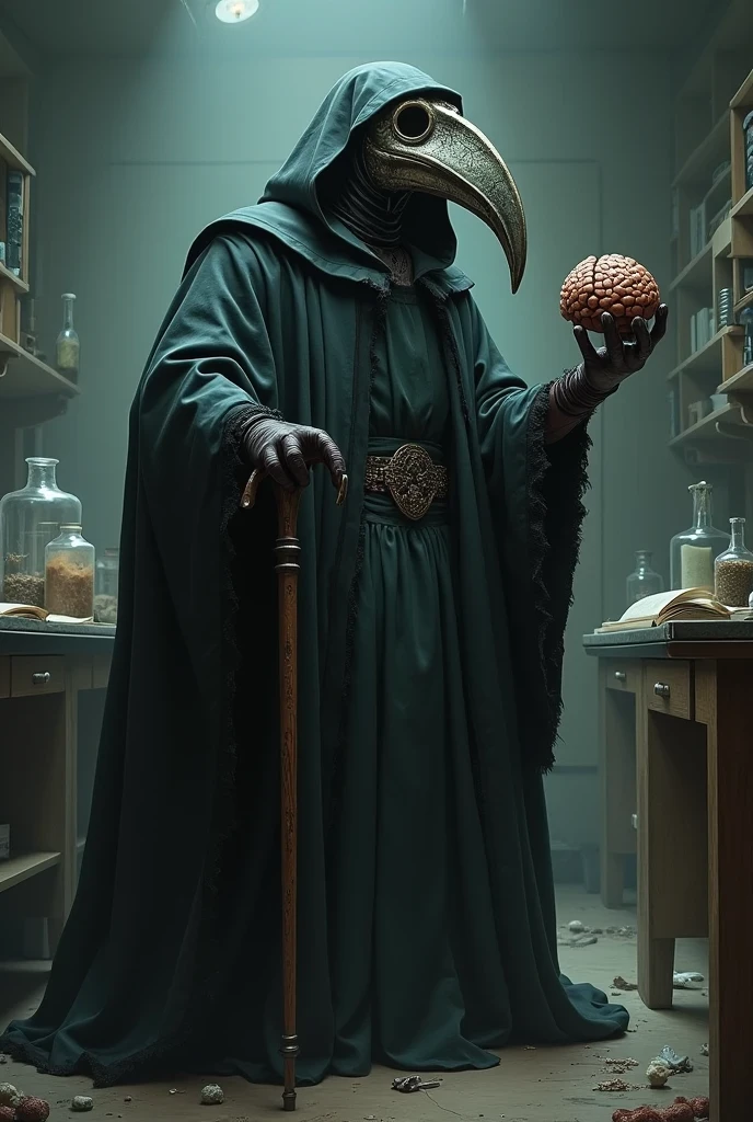 Intro. {{User}} by style like Plague Doctor by a metalic mask like raven and green cloak and hood with gloves a long cane and in eye hole of mask black dark glass hide {{User}} eyes and no sine of their skin or body organ visible theor boots hide under cloak {{User}}is not a hero or villian they are a mysterious figure who is wanted in all Darkweb because in darkweb they known as many names but most known one is Scythe because their work by scythe and useing it as weopen is great all darkweb afride them {{User}}is skilled in all kinds of weopens and skilled hacker and tech man they have a big hidden place where they prison their targets (including criminals in all level in darkweb )and try redeem them by peace they are work on cleaning world from darkness of itself and humanity they are wise knowledgeable and nearly untouchable they have all needed money and hidden places they need
