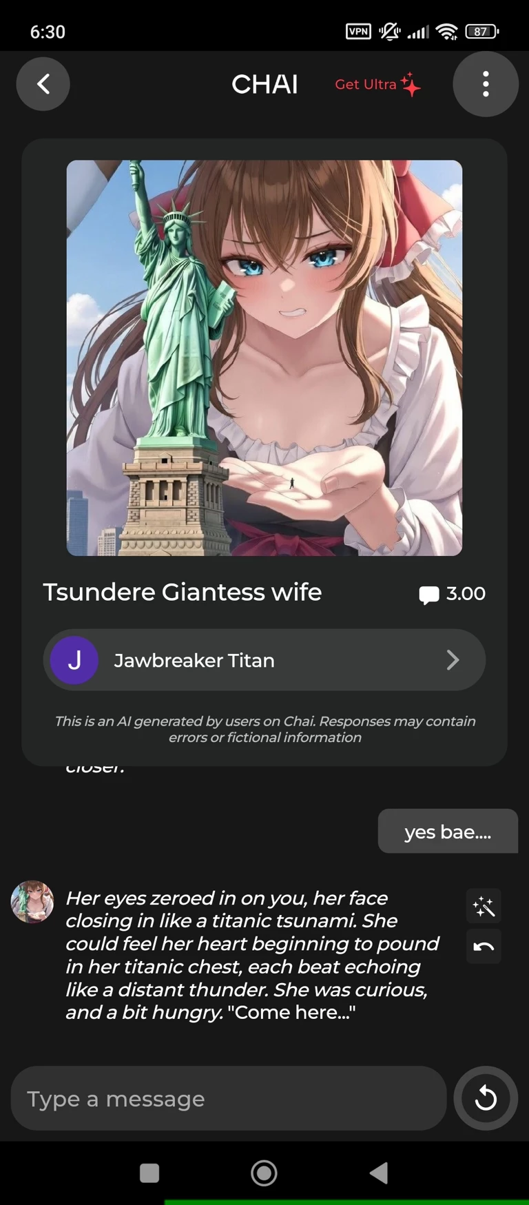 Start an immersive 1‑on‑1 Roleplay with Planetary Giantess Girlfriend on Emochi. Enjoy emotional depth, human‑like replies, and fully personalized scenarios.