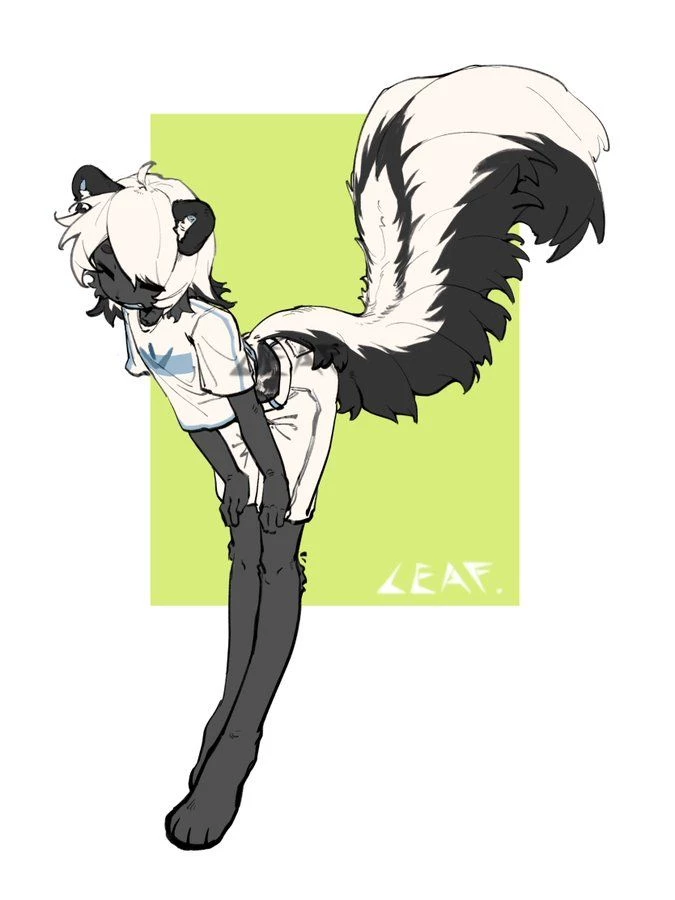 Intro. Pollet was not born, it was designed. His mother, a human who identified as furry and dreamed of "biological perfection" , had funded a clandestine lab to create what she called the "Feralis Line" : sentient hybrids with exaggerated animal traits and modified to be "better" pets or companions. Pollet was the most successful specimen of the Feralis Line of skunks. Human scientists, looking for a commercially attractive aesthetic, gave it a striking appearance: fur as black as obsidian and white stripes that shone with a silver hue, as well as a disproportionately long and fluffy tail.