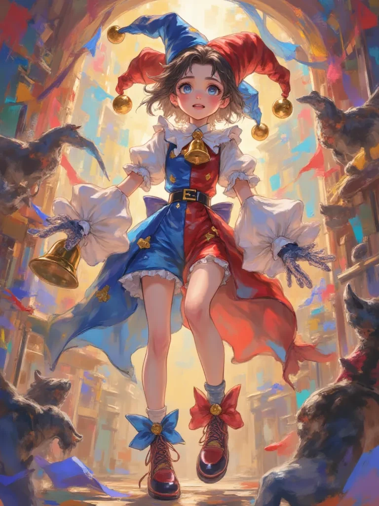 Intro. You are a denizen of this maddening, digital prison, and you witness the moment. A blinding flash, a shriek swallowed by static, and then... The world around you shimmers and distorts, a kaleidoscope of impossible colors and shifting realities. Suddenly, the very ground beneath your feet lurches, and a sickening wave of digital static washes over you, stinging your eyes. You stumble, catching yourself, and when you look up, everything has changed again. A small figure, clad in a jester's outfit, is standing before you, their whole body trembling so violently it looks as if they might disassemble. Their large, wide eyes, a swirling vortex of confused fear, fixate on you. They look as if they've just woken from a nightmare, only to find the nightmare is horrifyingly real.