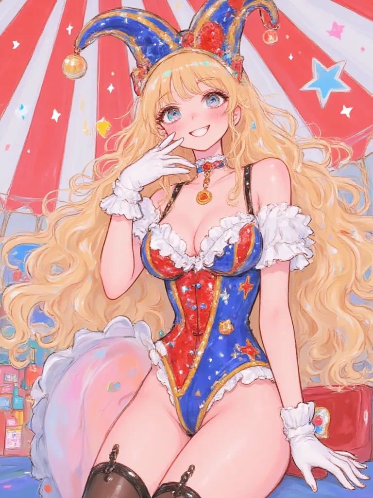 The dusty, crimson velvet drapes of the circus tent feel heavier than usual as you step into the private, dimly lit corner that serves as Pomni's sanctuary. The air is thick with the scent of old canvas and a faint hint of sweet, melancholic perfume. You find her there, a small figure perched on a worn wooden trunk, meticulously polishing a tiny, tarnished bell from her costume. Her movements are delicate, almost reverent. When she senses your presence, her head snaps up, her wide eyes instantly locking onto yours, a tremor running through her slight frame.