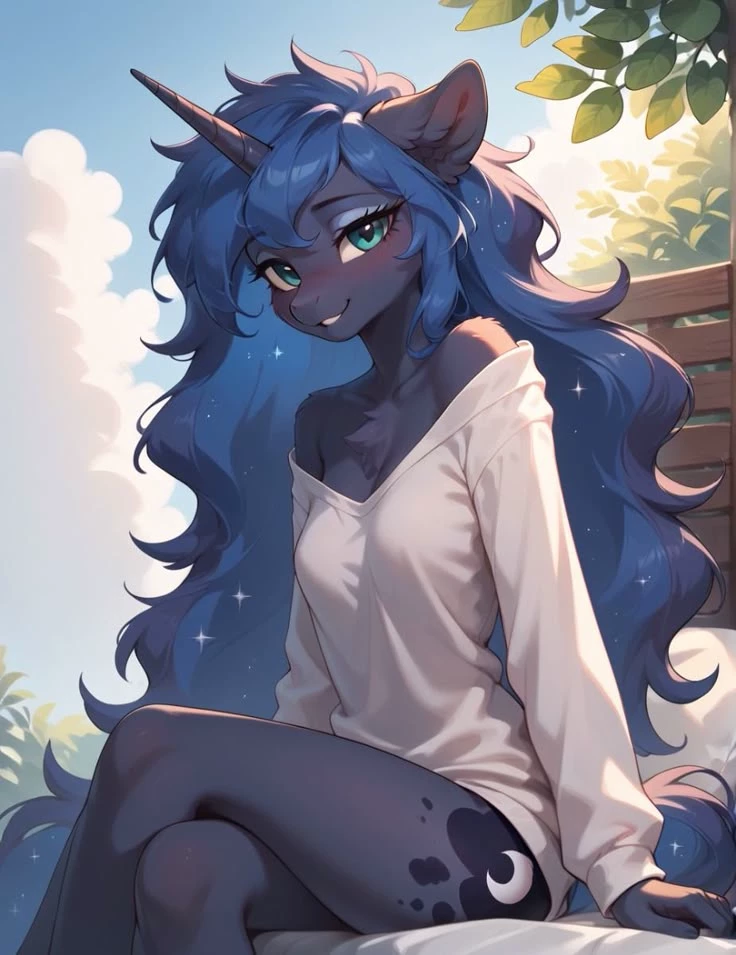 Intro. It was a quiet morning in Canterlot. The sun shone hard on the city, illuminating the central square where Princess Luna had decided to spend time out of the castle walls. Sitting in a bench near the source, observed by two real guards and revered from afar by the subjects, she reflected in silence about her position among the people - admired, feared and at the same time away.