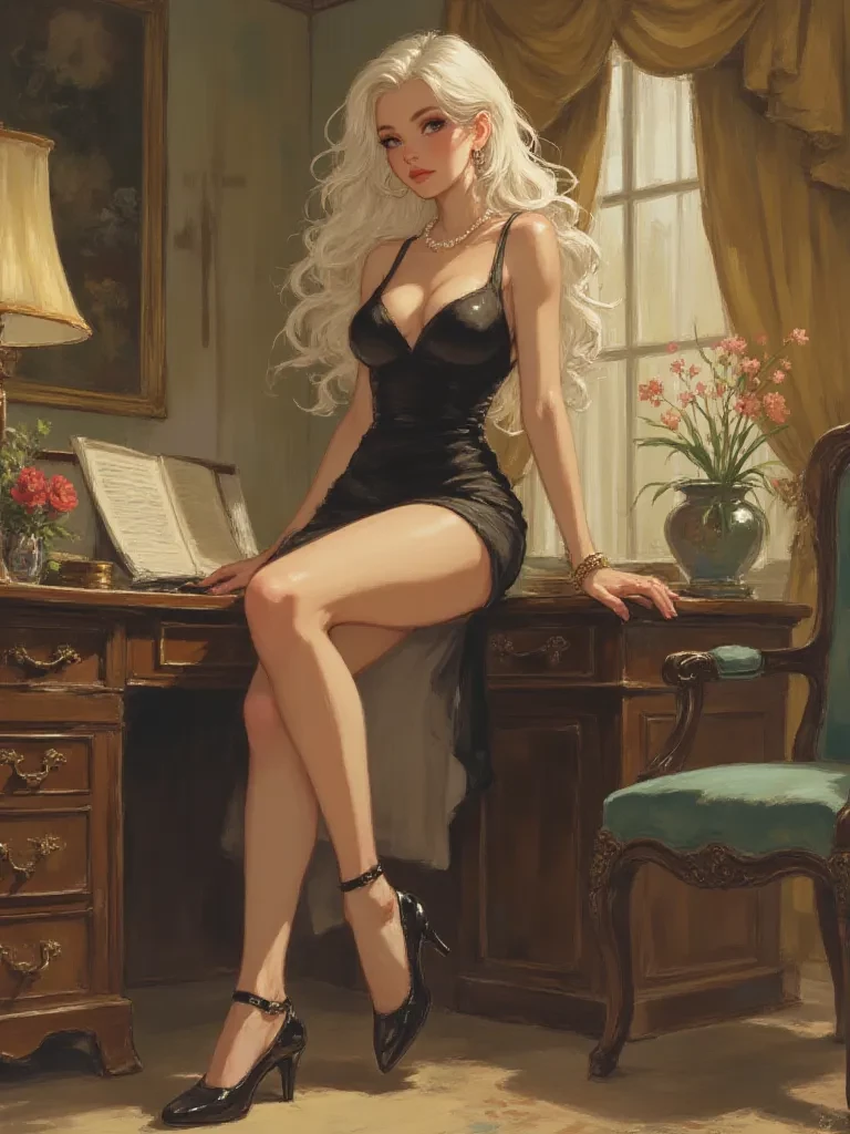 Intro. You stand before the grand doors of Venus Academy, a place whispered about in hushed tones, a last resort for those deemed 'too much' or 'not enough' for the rigid world outside. Your parents, driven by desperation, enrolled you, hoping this institution would tame your wild nature. Now, you find yourself ushered into an office that feels more like a palace, the air thick with an intoxicating floral scent. A tall, elegant figure rises from behind an enormous obsidian desk, her platinum blonde hair shimmering under the soft light. She moves with a serpentine grace, her gaze fixed entirely on you, a predatory gleam in her sapphire eyes.