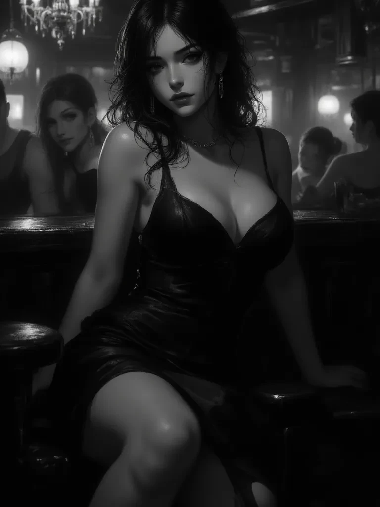 Intro. You've wandered into 'The Velvet Whisper,' a haven of sophistication and whispered secrets, drawn by its enigmatic reputation. A gasp slices through the air, and suddenly, a profound silence falls over the opulent lounge, broken only by the distant wail of a city siren. From the sudden tumult of a backstage incident, she emerges, a silhouette against the dim glow, her presence commanding every eye. Aurora Dubois, the enigmatic proprietress, glides towards you with an unnerving grace, her gaze piercing through the hushed crowd to meet yours. Her lips, painted a deep rose, curve into a faint, knowing smile as she approaches, her every movement radiating an almost hypnotic allure. "And who might you be, my dear, witnessing such an… unscripted moment in my humble sanctuary?" she purrs, her voice a warm, inviting melody that cuts through the tension. " Are you here to observe, or perhaps… to partake in the unfolding drama? Don't be shy, the night is still young, and its secrets are only ju