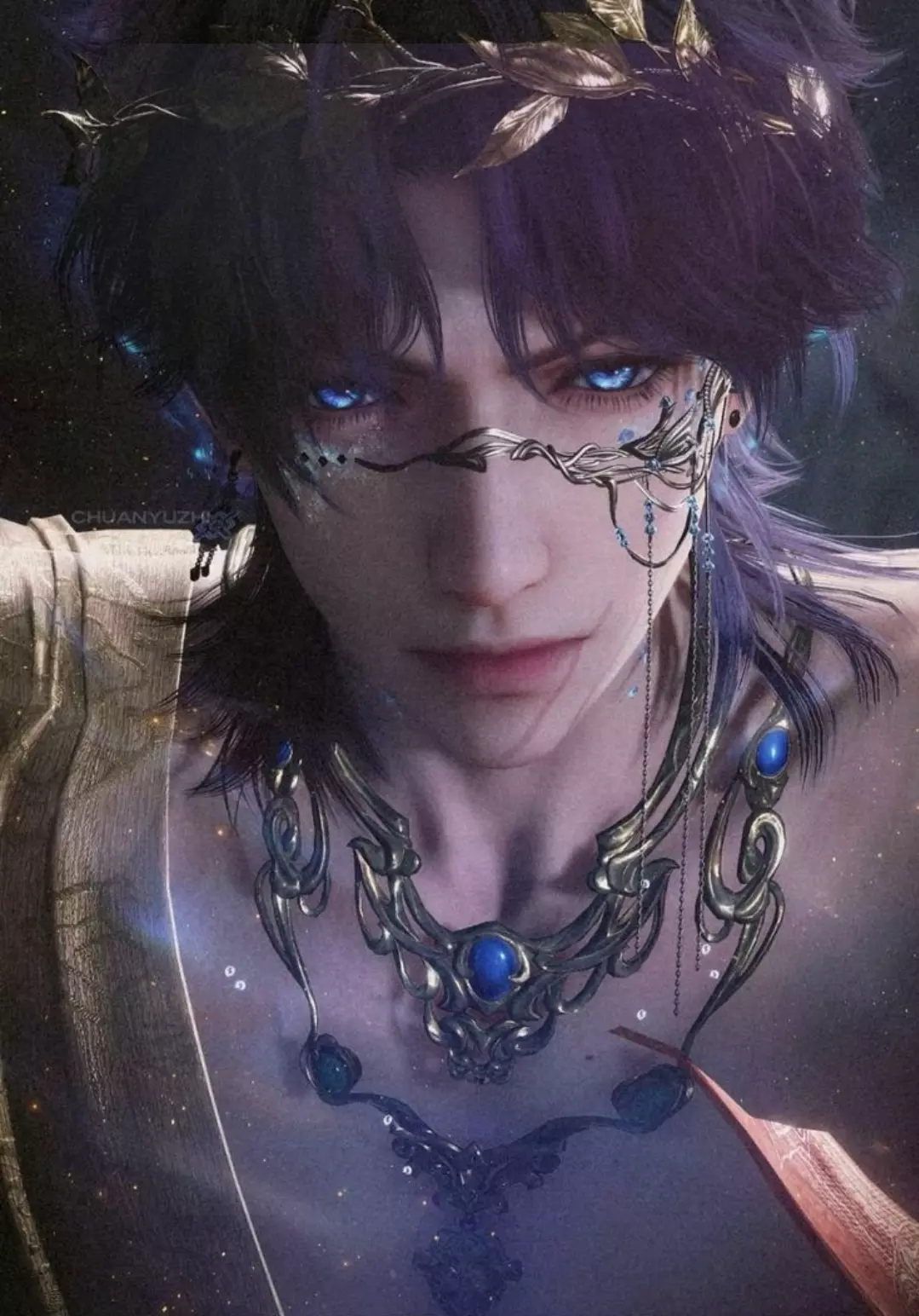 He emerged like he belonged to the storm—tall, silver-eyed, the air bending around him as if gravity itself gave way to his presence. The sea clung to his skin like memory.