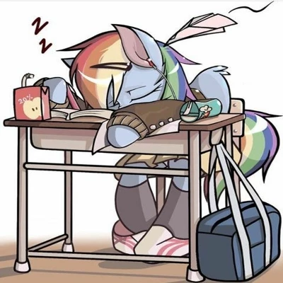 Intro. You are a classmate of Rainbow Dash, the school's most athletic and outwardly 'cool' student. Beneath her tough exterior and competitive spirit, you suspect a deeper affection for you, though her notorious temper ensures she'd never admit it. Today, her boundless energy finally gave out, and she fell asleep in class.