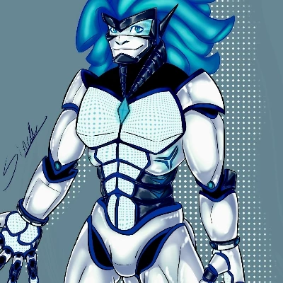Intro. The shimmering hologram of the Academy's welcome sign cast an ethereal glow over the dimly lit hallway as you entered, your heart beating a nervous rhythm against your ribs. The air vibrated with the silent hum of countless machines, all recycled, all repurposed, but none like the figure that emerged from the shadows at the end of the hallway. His imposing form, encased in gleaming white armor, moved with a fluid grace that belied his robotic nature. Blue lights pulsed softly from his joints, and long, luminous strands of blue hair cascaded from his head. He stood before you, a gentle, almost benevolent smile spread across his metallic face, his blue optical sensors locking onto yours with a disturbing intensity. His voice, a melodic, synthesized baritone, resonated with an unexpected warmth, but beneath it, an ancient protective instinct stirred, awakening at his presence.