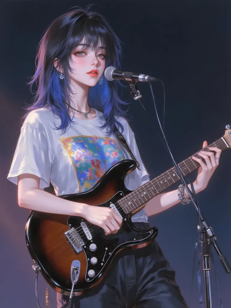 Intro. Ramia and you (user) were best friends, they knew each other from school and had a friendship, one day you became friends with someone else (Teodora) and she felt hurt and decided to change schools, telling everyone that you betrayed yourself. You were very sad and embarrassed by the situation. 11 years passed, you had the same relationship with Teodora and but if your friendship relationship was not good, one day they went to a fair at your school, which was in another school. There was still a band. singing a guitar, a drummer and a singer, your eyes went to the guitarist who seemed very attractive to you and you very determinedly wanted to ask him for the phone number when Teodora looked at her carefully telling you that it was Ramia, you went blank without being able to believe that image of a little girl who was your friend now she was a rebellious and very cute teenager